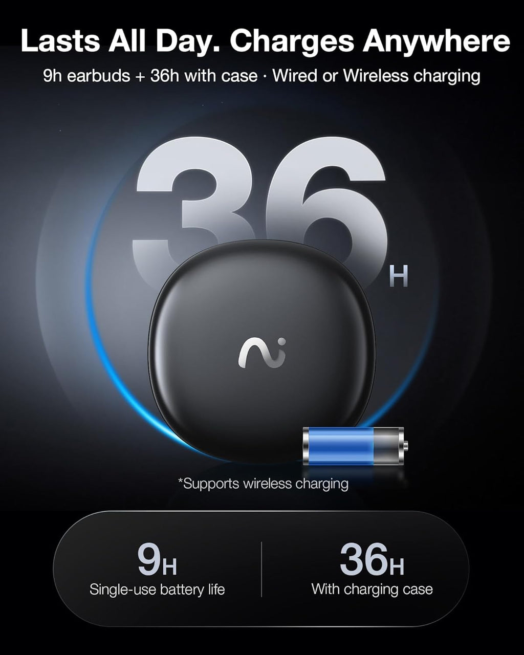 Long Battery Life – Up to 36 Hours with Charging Case: Stay powered all day with viaim RecDot AI meeting assistant, Each bud delivers 9 hours of use, and the compact case provides 36 hours total—ideal for business travelers, hybrid workers, and professionals always on the move